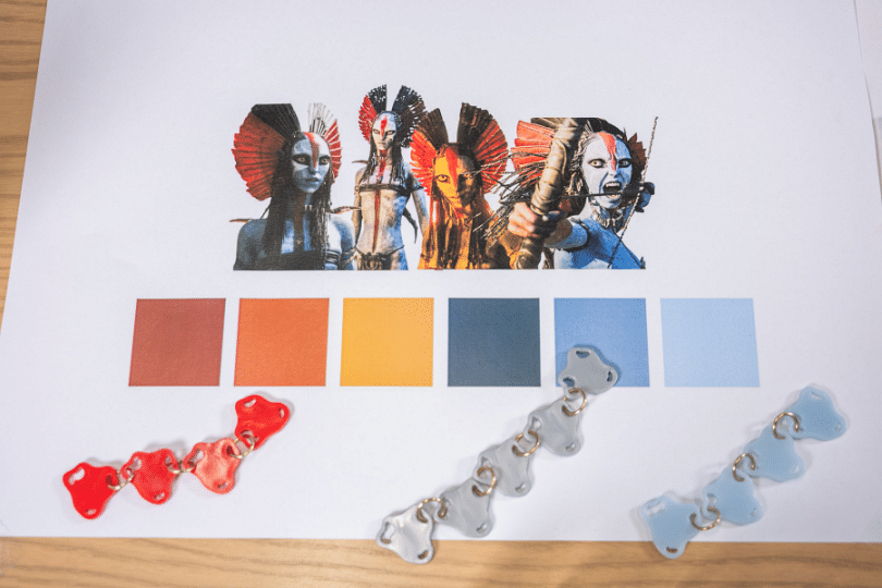 “สิ่งสำคัญในการออกแบบชุดนี้ คือการหยิบเอาแรงบันดาลใจจาก Avatar: Fire and Ash มาใช้ โดยเฉพาะสี แสง และความโดดเด่นของตัว ‘วารัง’ (Varang) หัวหน้าเผ่าไฟในเรื่อง โดยเลือกใช้สีเทาที่เป็นสีของเถ้า (Ash) รวมถึงสีฟ้าที่เป็นเบสหลักของ Avatar และด้วยความที่วารังเป็นหัวหน้าเผ่าไฟ เราเลยใช้สีแดงเป็นอีกหนึ่งสีหลักในผลงานชิ้นนี้ ซึ่งทั้งสีเทา สีฟ้า และสีแดง เป็นสีของฝาขวดน้ำพลาสติก 100% ไม่มีการใส่สีเพิ่มเข้าไปเลย นอกจากนี้ยังมีสีโอ๊ต (Oat) ที่ทำจากกล่องพลาสติกใสใส่อาหารซึ่งเราใช้เป็นตัวเบสสี รวมแล้วทั้งชุดนี้เราใช้ฝาขวดน้ำพลาสติกและกล่องพลาสติกใสใส่อาหารมาขึ้นรูปเป็นชิ้น ๆ รวมทั้งหมดเกือบ 3,470 ชิ้นเลยทีเดียว” เพชรเล่าถึงกระบวนการสร้างสรรค์ โดยเธอเผยว่าเพื่อให้ชุดนี้โดดเด่นบนพรมแดง จึงใช้เทคนิคการปั๊มพลาสติกให้ออกมาเล่นแสงและเป็นประกายเมื่อโดนแสงแฟลช ทำให้ภาพของ โอปอล สุชาตา ในงาน World Premiere ภาพยนตร์ “Avatar: Fire and Ash อวตาร: อัคนีและธุลีดิน” ดูเฉิดฉายและเปล่งประกายอย่างที่เห็นกัน