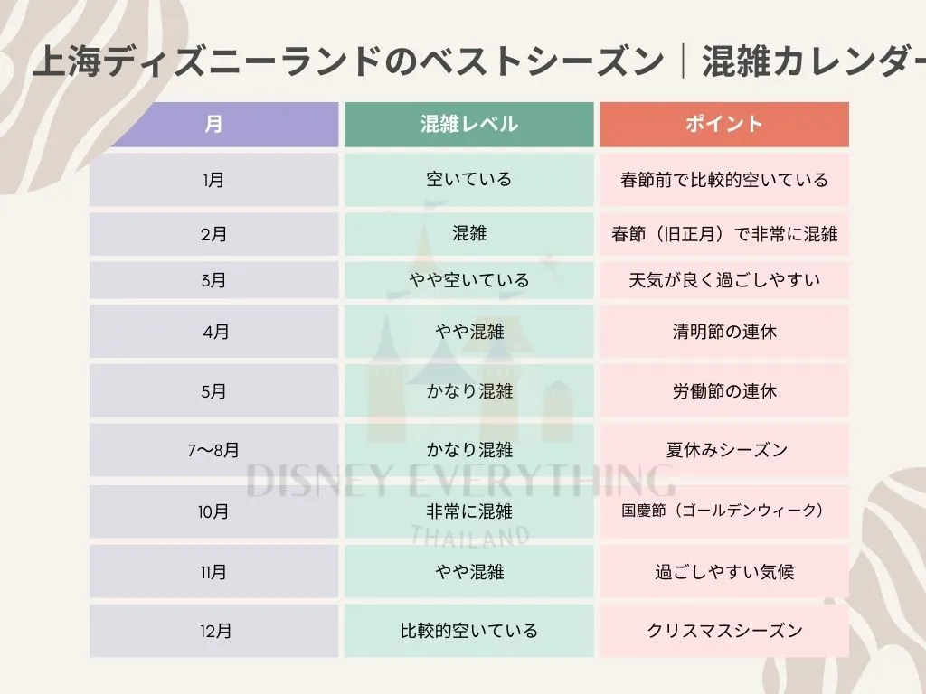 これから旅行を計画している人は、ぜひ参考にしてみてください。自分にぴったりのベストシーズンを見つけて、上海ディズニーで素敵な思い出を作りましょう ✨